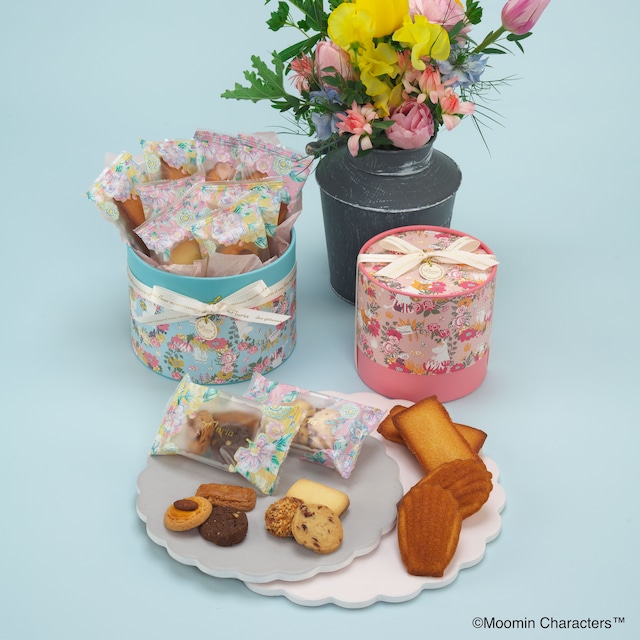 贈り物にピッタリな、焼菓子アソート(M)のご案内です。 さらにムーミンの絵柄の入った期間限定限定パッケージです。 フルーリアらしい花柄のリースにムーミン谷の仲間たちが描かれた楽しくてかわいらしいデザインに仕上がっています。 3種類の焼き菓子が詰め合わされたこのBOXは、どなたでも楽しめる素敵な一品です。 サクサクのクッキー、しっとりとしたマドレーヌ、風味豊かなフィナンシェが一緒に楽しめる、嬉しい詰め合わせです! [内容量] マドレーヌ2個、フィナンシェ×2個、サシェ×4個(2種各2個) [特定原材料等] 小麦、乳、卵、アーモンド、大豆 [保存方法] 高温多湿を避け常温で保存 [賞味期限] 製造日より60日 *発送日含め30日以上の賞味期限の商品を発送いたします。 [外寸(紙箱)] 直径16㎝×10.5㎝ [配送方法] 常温 [包装・熨斗等] 画像のリボンの仕様で最終形態となります。 包装・熨斗等の対応しておりません事をご了承ください。