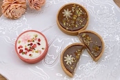 ホワイトチョコレートにストロベリーパウダーを練り込んだチョコレートを流し込みました。